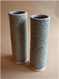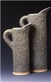 The forms are inspired by metal garage paraphernalia; jugs, oil cans, drip trays and exhaust pipes. The glaze reflects the deterioration of the metal, softening the hard edges and turning something once straight and industrial into something smooth and organic.