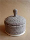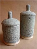Wheel thrown, functional forms. Stoneware body with a volcanic glaze. Taking inspiration from metal containers.