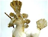Initially she sketches out her designs, then rolls out the clay, folds & once hardened assembles the legs & body. Again they are left to harden & the neck & head added. Each piece is made to be humorous or joyful – made to make you smile! After bisq firing to 1020• a glaze is applied & the piglets or animals are raku fired to approx 950•