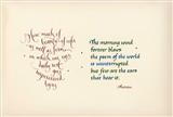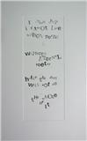 His works are word-text-language based employing both classical and contemporary forms, using a cross section of media and techniques including printed text, lead type, canvas and slate.